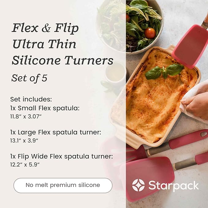 Starpack 'Flex & Flip' Flexible Silicone Turner Spatula Set (3 Pcs) - High Heat Resistant Spatulas for Cooking Egg 600°F - Silicone Pancake Turner Spatula, LFGB Grade Non Stick Rubber Kitchen Utensils