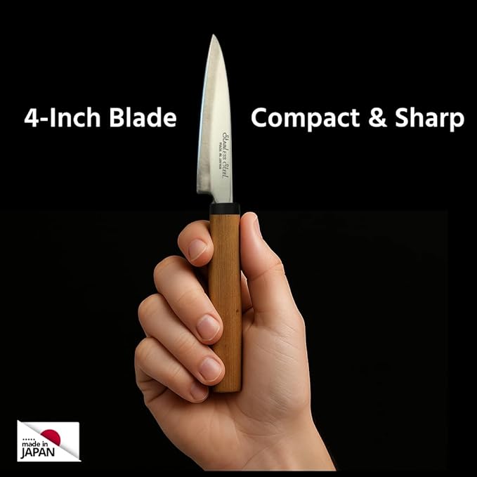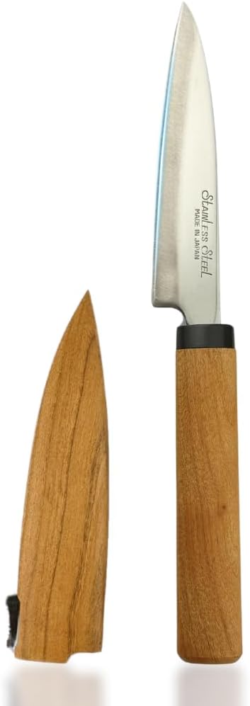 Japanese Paring Knife 4-Inch, High Carbon Stainless Steel Fruit Knife with Wooden Handle and Sheath, Small Utility Kitchen Knife for Peeling, Coring, Mincing, Made in Japan