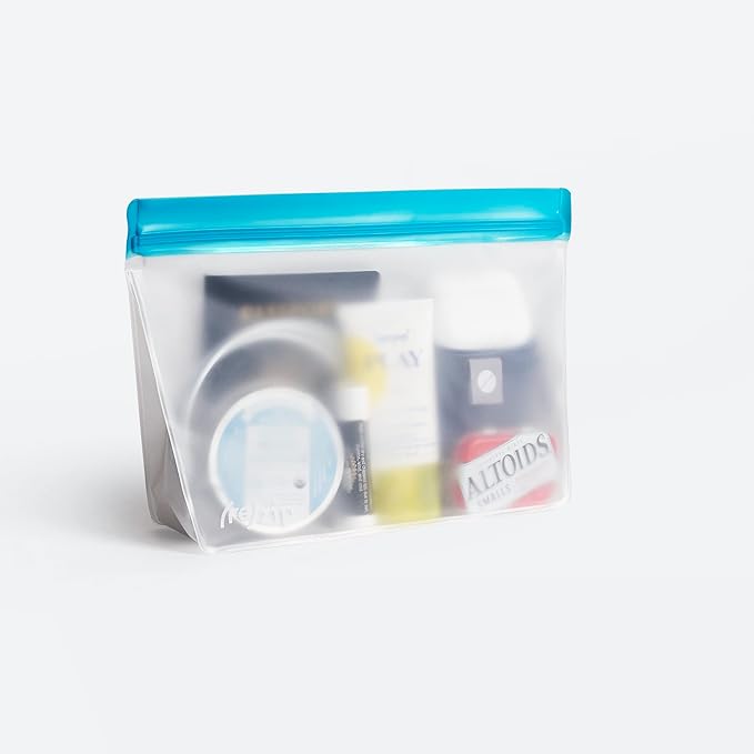 (re) zip 3-Piece Stand-Up Reusable Bag Kit | BPA-Free, Food Grade, Leakproof, Freezer and Dishwasher Safe | Quart (1), 2-Cup (1), Snack (1) | Aqua