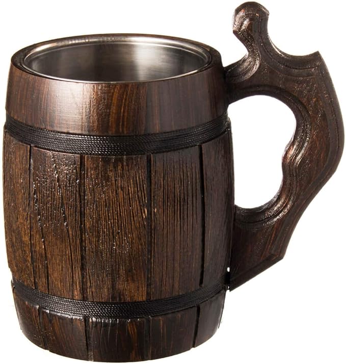 MFC Beer Mug 20 OZ - Tankard Mug - Beer stein - Wooden beer mug - Stainless Steel Cup - Handmade Gifts for Men - Fathers Day, Christmas or Birthday Gift Idea - Men Mug - Barrel Brown