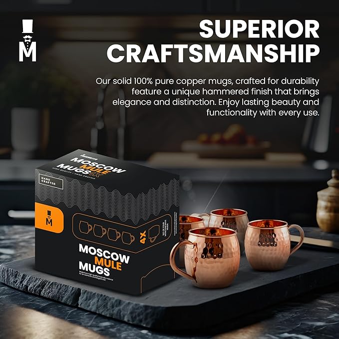 Moscow-Mix Moscow Mule Mugs - Set of 4-100% Pure Copper Mugs Large 16 oz - Food Safe - Premium Moscow Mule Cups Set of 4 - Solid Copper Cups Perfect Premium Gift