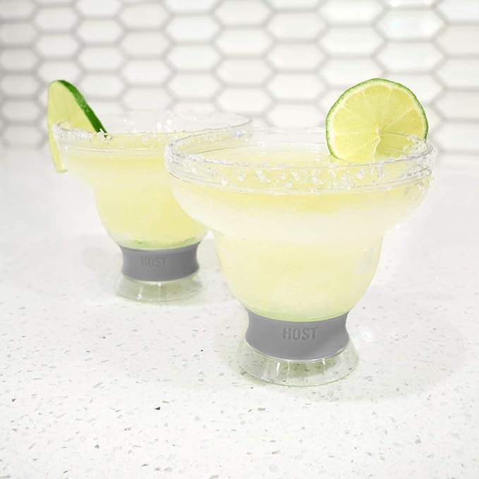 HOST FREEZE Margarita Cocktail Glasses, Frozen Cup Double Wall Insulated Daiquiri Plastic Tumblers Set Fun Tequila Drinking Cups Grey Set of 2