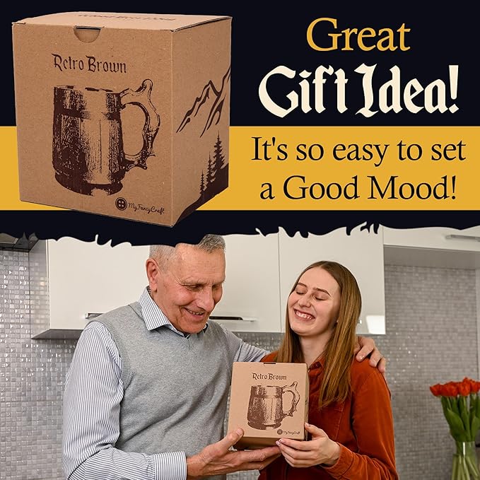 Beer Mug 20 OZ - Tankard Mug - Beer stein - Wooden beer mug - Stainless Steel Cup - Handmade Gifts for Men - Fathers Day, Christmas or Birthday Gift Idea - Men Mug - Retro Brown