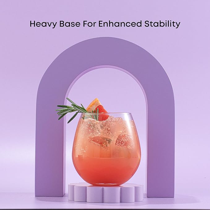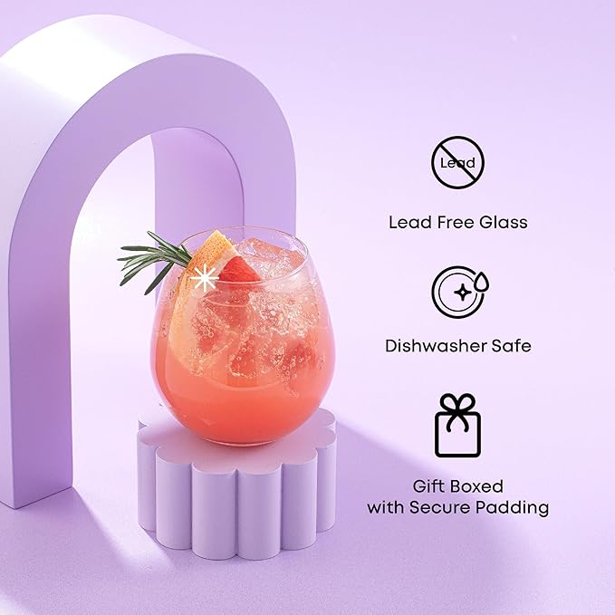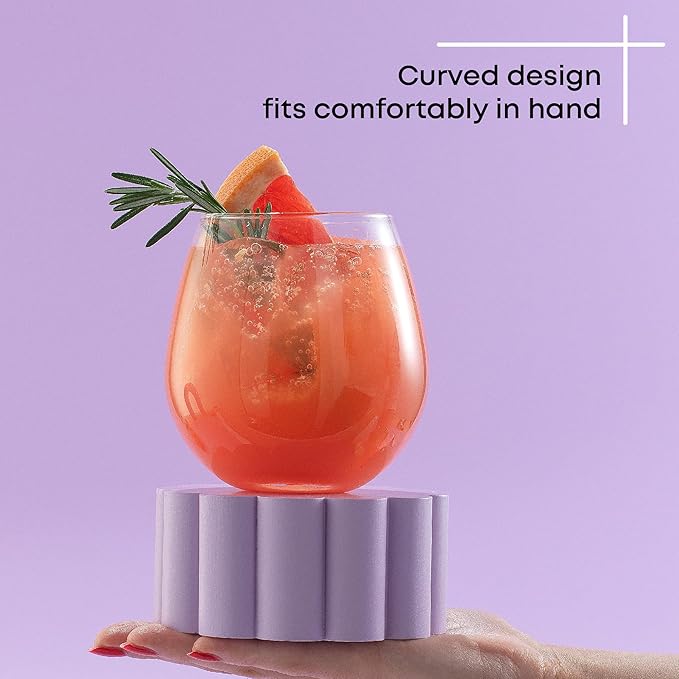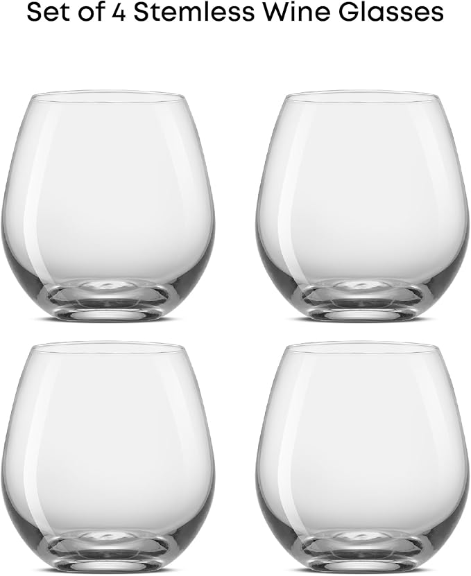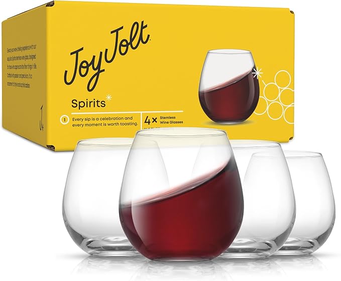 JoyJolt Spirits Stemless Wine Glasses for Red or White Wine (Set of 4)-15-Ounces