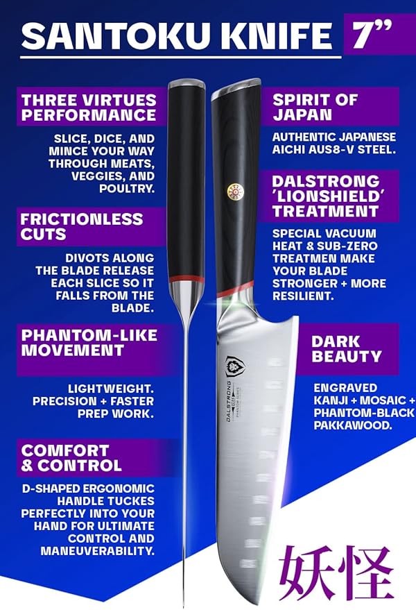 Dalstrong Santoku Knife - 7 inch - Phantom Series - Japanese High-Carbon AUS8 Steel - Pakkawood Handle - Razor Sharp Kitchen Knife - Asian Vegetable Knife - Sheath Included