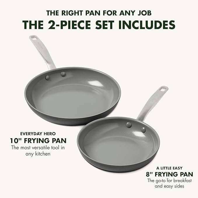 About This COOKWARE SET INCLUDES: 8” Frying Pan and 10” Frying Pan. REINFORCED WITH DIAMONDS: Metal utensil safe, GreenPan's diamond-infused... Read more