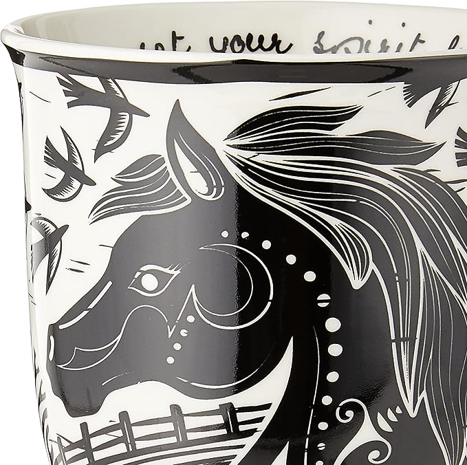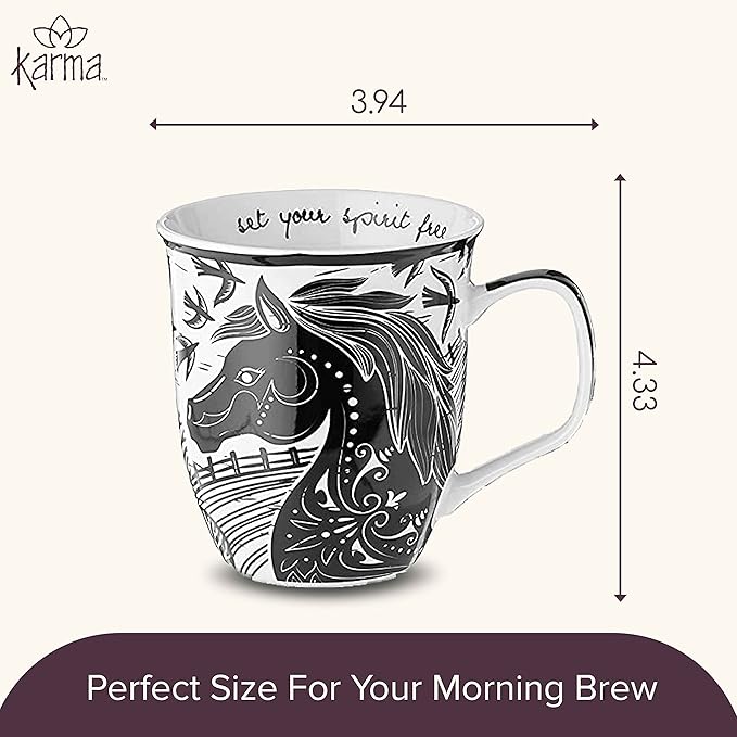 Karma Gifts 16 oz Black and White Boho Mug Horse - Cute Coffee and Tea Mug - Ceramic Coffee Mugs for Women and Men