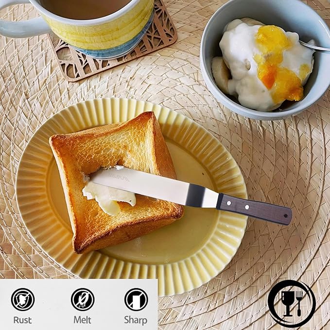 Cake Decorating Angled Icing Spatula Set of 6 8 & 10 Inch Wooden Handle Stainless Steel Offset Frosting Spatulas