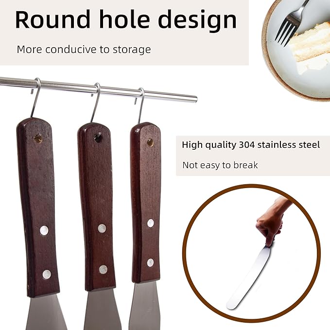Straight Icing Spatula Stainless Steel Baking Set of 6", 8" & 10" Wooden Handle Cake Decorating Frosting Spatulas