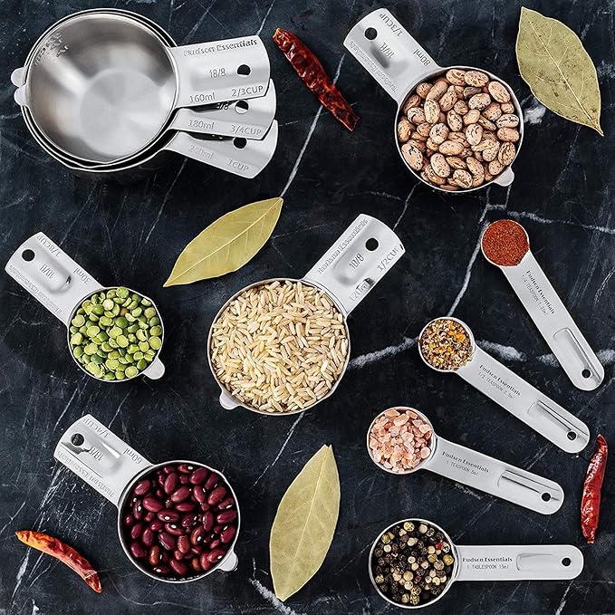 Hudson Essentials Stainless Steel Measuring Cups and Spoons Set - Stackable Set with Spout (11 Piece Set)