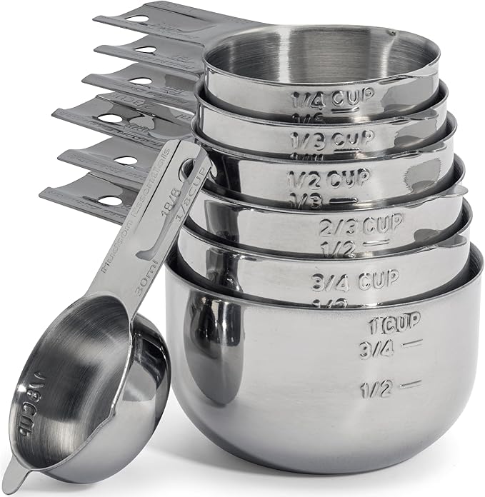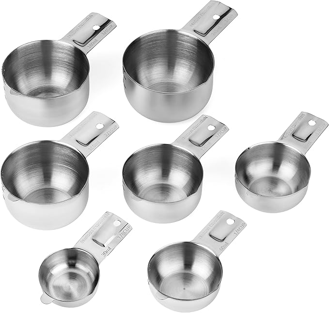 About This Complete set of seven: includes 1/8, 1/4, 1/3, 1/2, 2/3, 3/4 & 1 cup premium stainless steel measuring... Read more