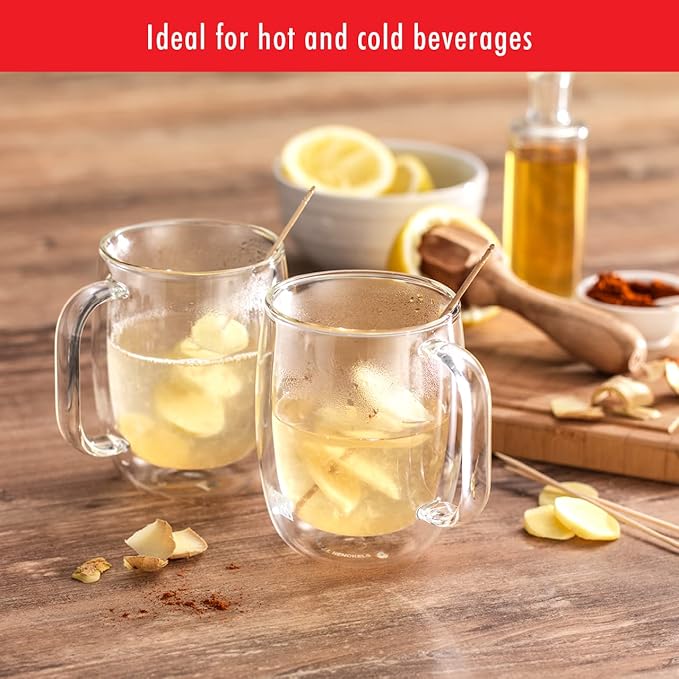 ZWILLING Sorrento Plus 4-pc Double Wall Glass Coffee Mugs, Insulated Coffee Mug, Clear