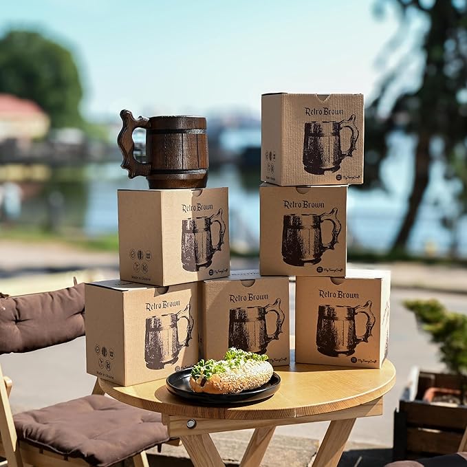 About This Set of 6 Beer Mugs. Improved mugs with boxes for all true beer lovers !!! Handmade oak wood... Read more