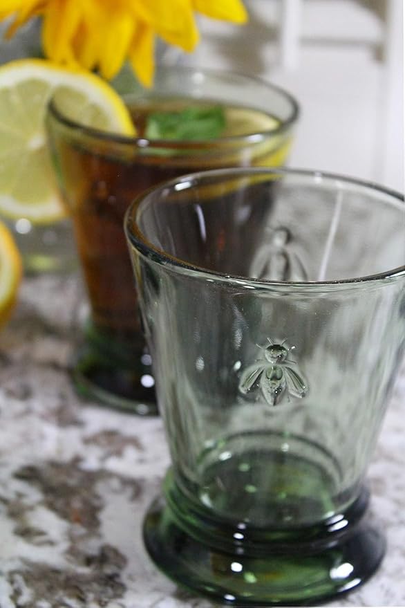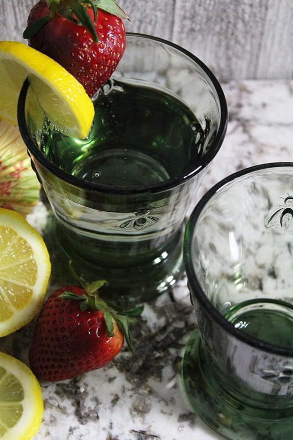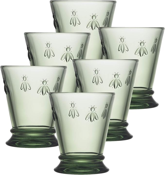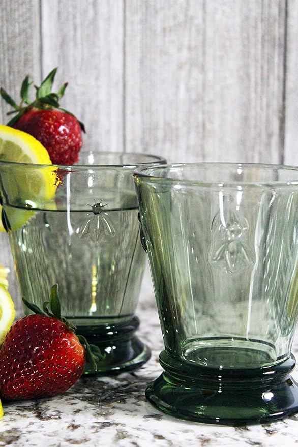 La Rochere Napoleon Bee Green Tumbler Set of 6 – La Rochere Bee Glassware Sets – Fancy Glassware Drinking Glasses (9 oz)