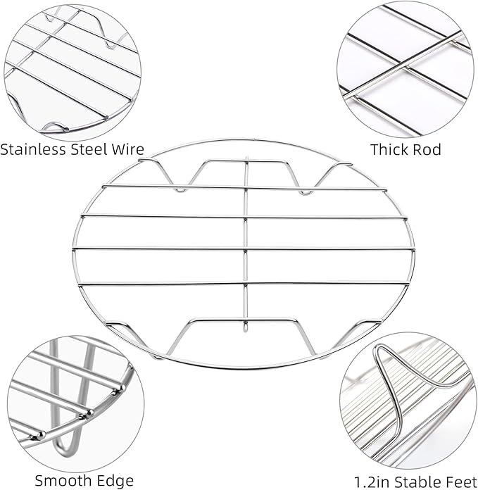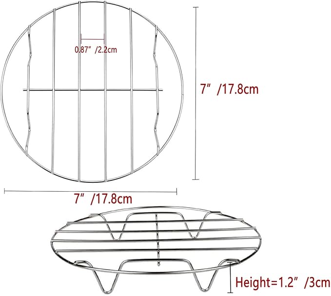 TamBee 7 Inch Round Cooking Rack Air Fryer Rack Cooking Steaming 304 Stainless Steel Round Rack Cross Wire w Stand Cookware for Air Fryer Pressure Cooker Canning 2Pcs(2,7Inch)
