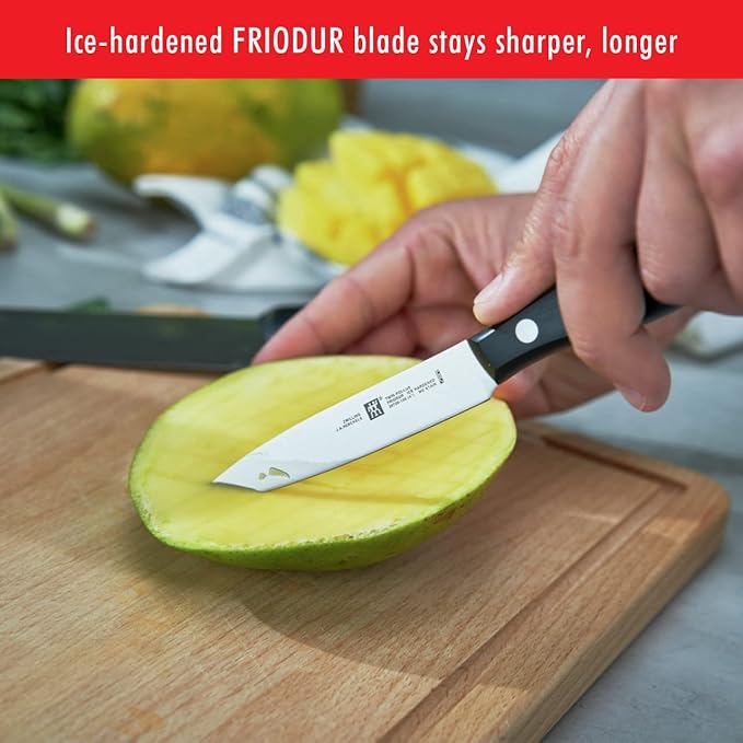 About This Includes 4" paring, 8" chef Manufactured in Germany Special formula high carbon NO STAIN steel One-piece precision-stamped blade... Read more