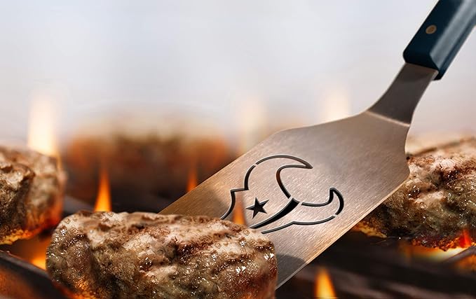About This Dimensions: 18" x 4" Unique laser-cut design Heavy-duty stainless steel Team-colored composite handle with durable brass rivets and... Read more