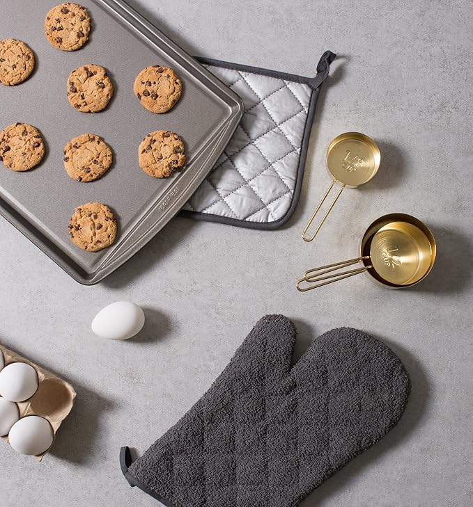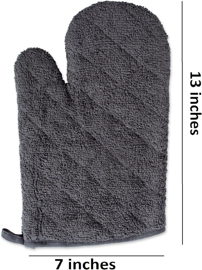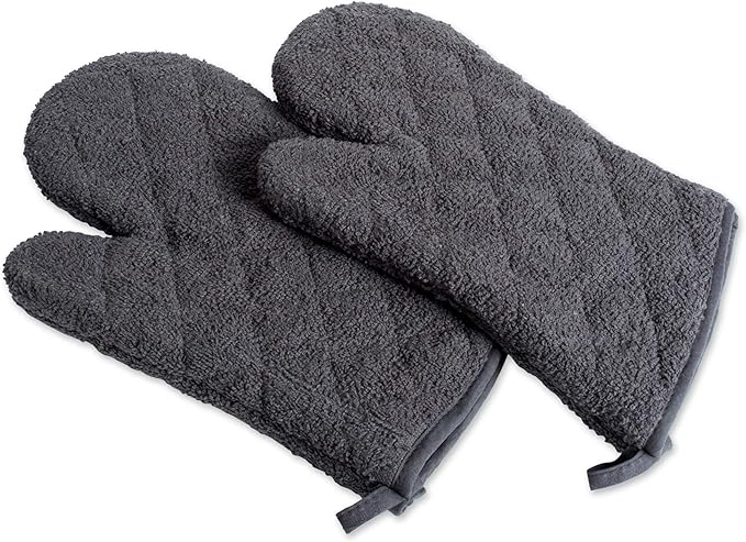 DII Basic Terry Collection 100% Cotton Quilted, Oven Mitt, Mineral Gray, 2 Piece