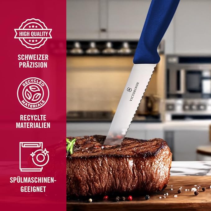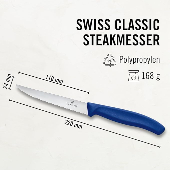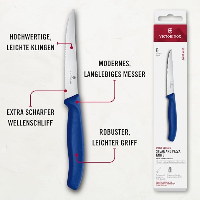 Victorinox 6.7232.6 Swiss Classic Steak Knife Set Ideal for Slicing a Wide Variety of Steak Cuts Wavy Edge Blade in Blue, Set of 6