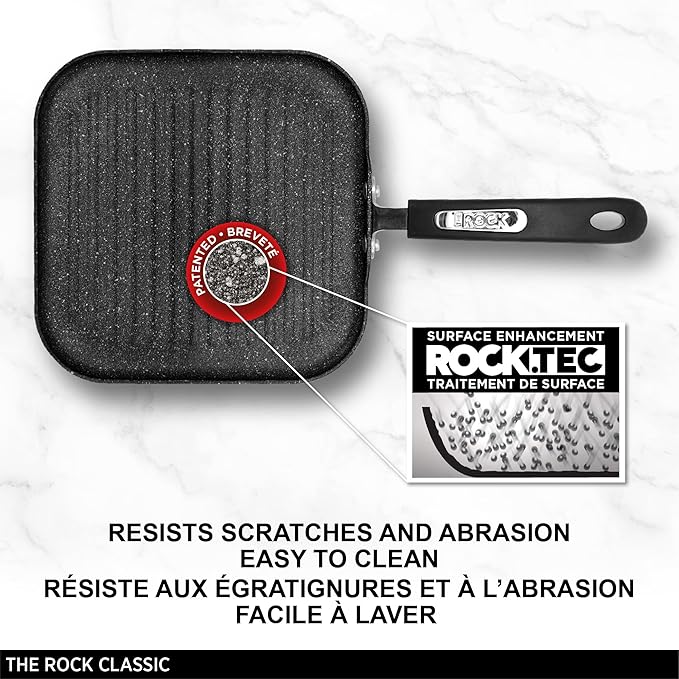 Starfrit The Rock 25cm (10") Non-Stick Grill Pan - Durable Forged Aluminium - Oven Safe - PFOA Free - Easy to Clean - Black