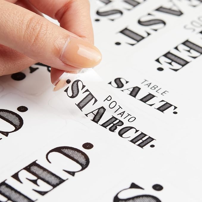 Talented Kitchen Clear Vinyl Pantry Labels for Food Containers - Waterproof & Repositionable for Kitchen Jars - Farmhouse Pantry Organization - Preprinted Baking Labels - Pack of 154, Assorted Sizes