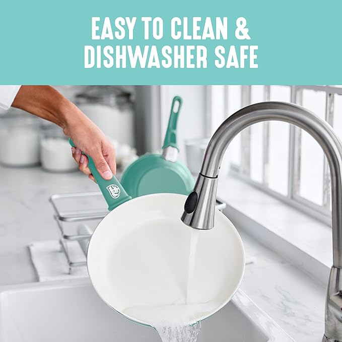 GreenLife Soft Grip 16 Piece Cookware Set, Non-Toxic PFAS-Free Ceramic Nonstick, Pots, Frying, Sauce, Saute, Glass Lids, Stay-Cool Handles, Wobble Free Bases, Dishwasher & Oven Safe, Turquoise