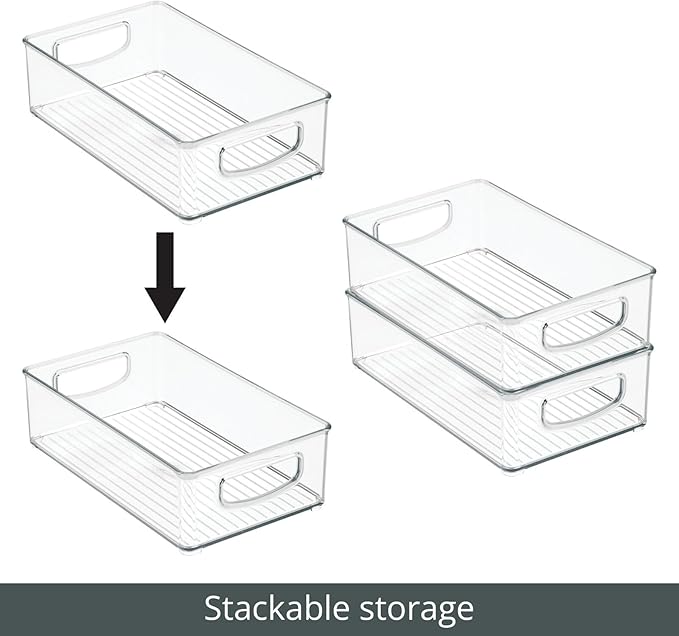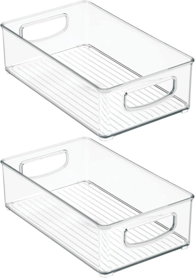 mDesign Small Plastic Office Storage Container Bins w/Handles for Organization in Filing Cabinet, Closet Shelf, Desk Drawers, Organizer for Notes, Pens, Pencils - Ligne Collection, 2 Pack - Clear