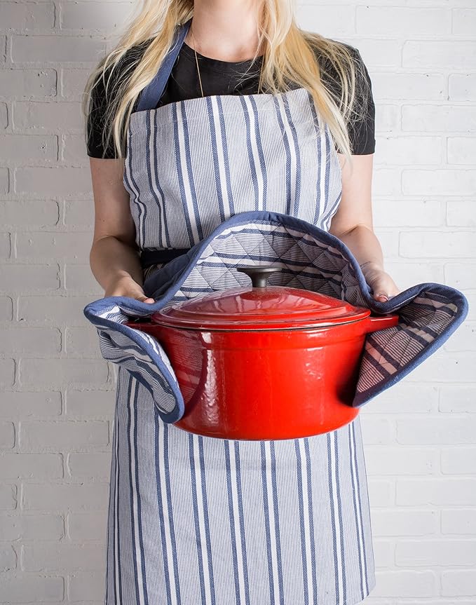 DII Double Strip Chef Kitchen Cooking & Baking Collection, Double Oven Mitt, 35x7.5, French Blue
