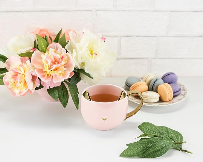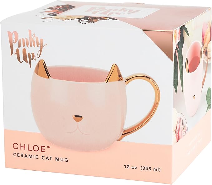 Pinky Up Chloe Cat Ceramic Coffee Mug, Tea Cups, Travel Mugs for Cappuccino, Latte, Hot Chocolate, Milk, Herbal Teas, 12 oz, Set of 1, Pink