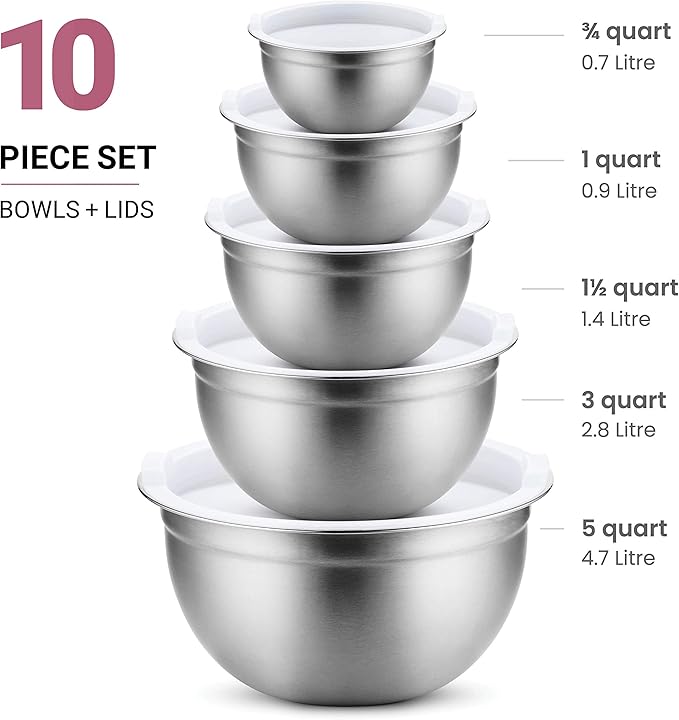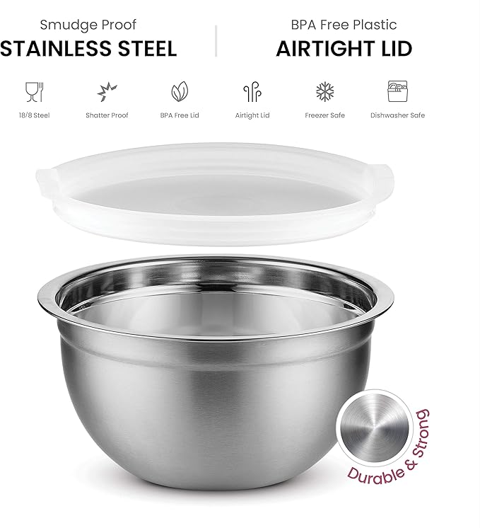 Stainless Steel Mixing Bowls Set with Lids, Home Kitchen Cooking Essentials Household Must Haves for Baking, 5 Pieces