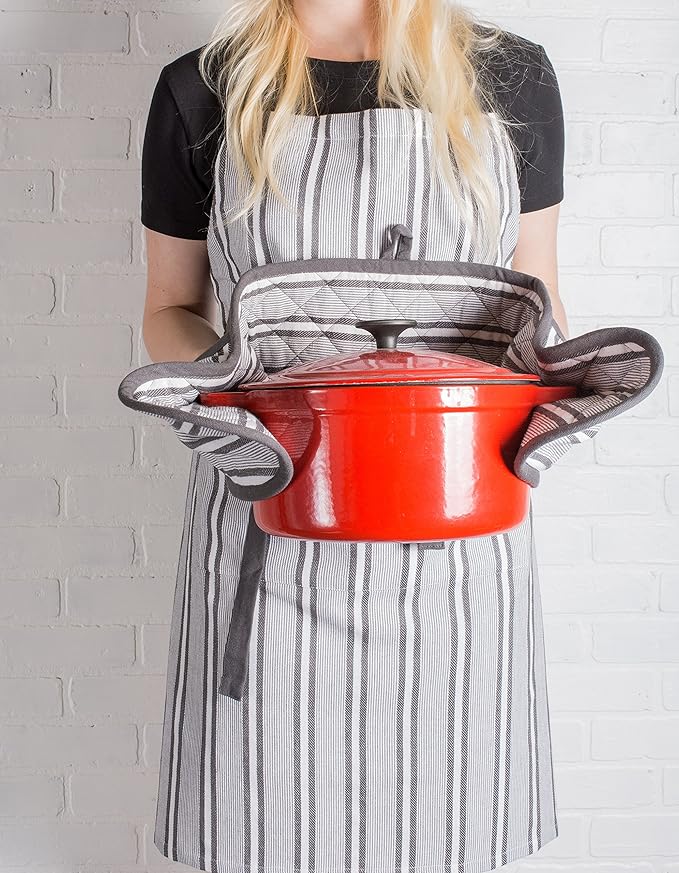 DII Double Strip Chef Kitchen Cooking & Baking Collection, Double Oven Mitt, 35x7.5, Mineral Gray