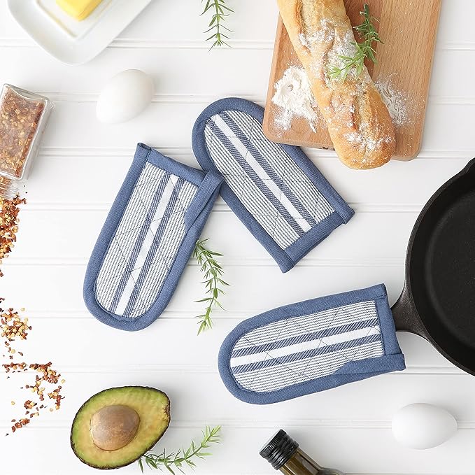 DII Double Strip Chef Kitchen Cooking & Baking Collection, Pan Handle Set, 6x3, French Blue, 3 Piece
