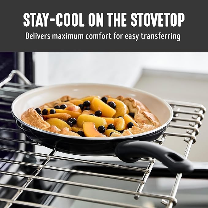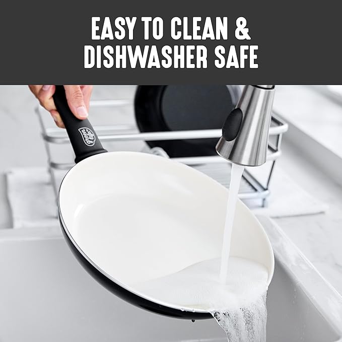 GreenLife 16 Piece Nonstick Cookware Set, Soft Grip Non-Toxic PFAS-Free Ceramic Pots & Pans, Dishwasher & Oven Safe, Frying, Sauce, Utensils, Glass Lids, Stay-Cool Handles, Wobble Free, Black & Cream