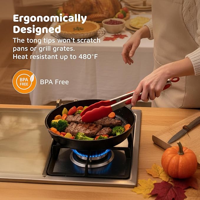 About This Durable Steel Construction: Built to last, these cooking tongs feature stainless steel with tongs with silicone tip ends... Read more