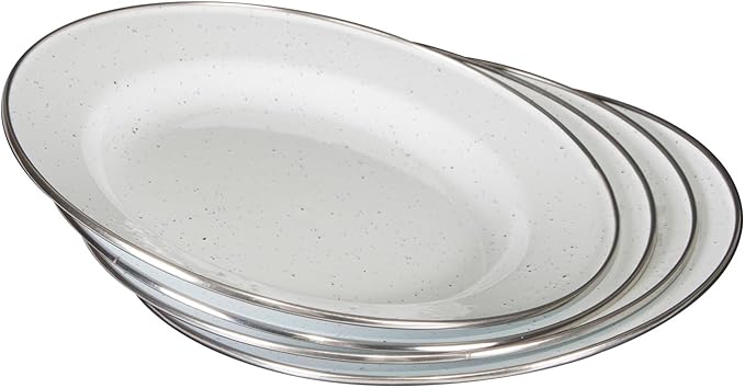 Stansport Deluxe 24-Piece Enamel Tableware Set - Enamel Plates and Bowls Lightweight and Durable Camp Dish Set for Camping and Backpacking Plates and Bowls for 4 People