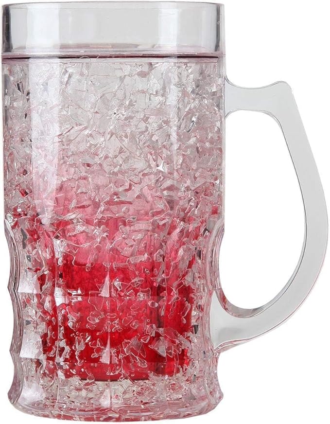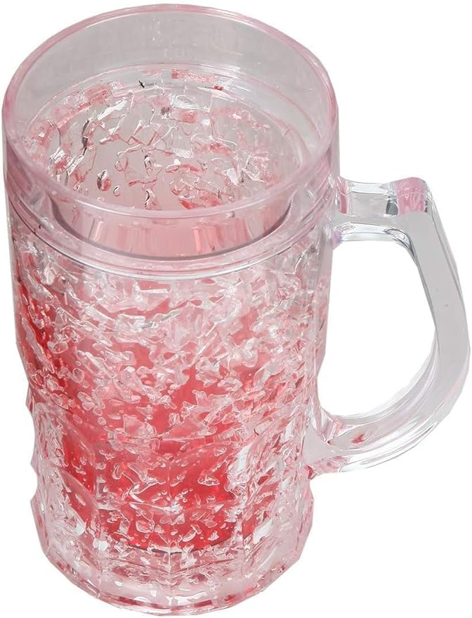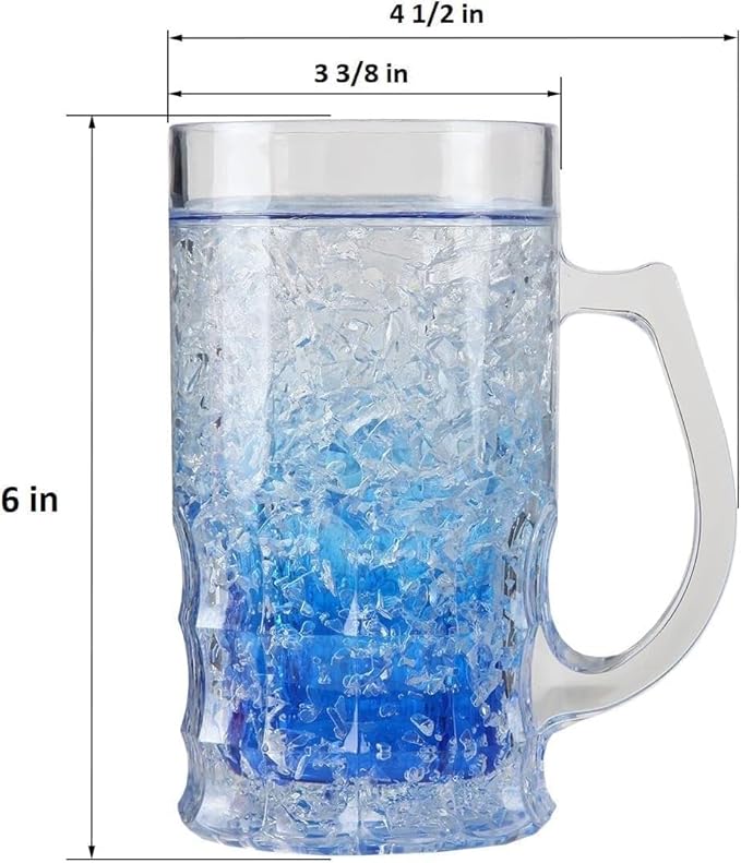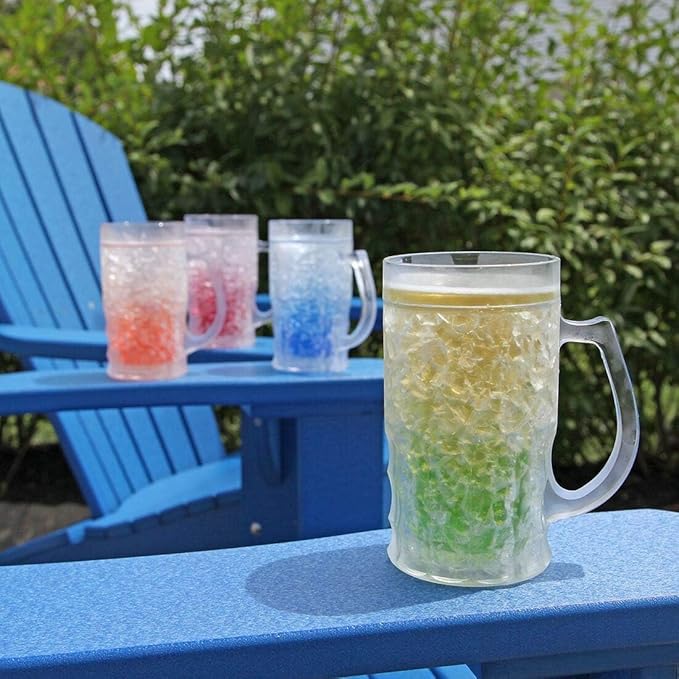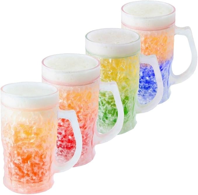 Lily's Home Insulated Double Wall Gel-Filled Acrylic Frosted Freezer Beer Glasses, Great for Enjoying Brews at BBQs and Parties, Clear with Assorted Color Bases (14 oz. Each, Set of 4) - Mug Shape