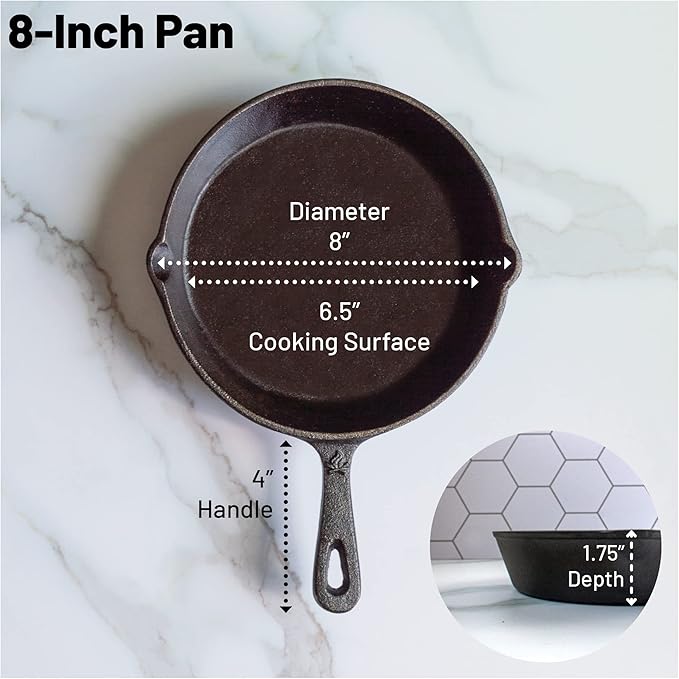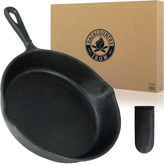 Backcountry Iron 8 Inch Round Medium Pre-Seasoned Cast Iron Skillet