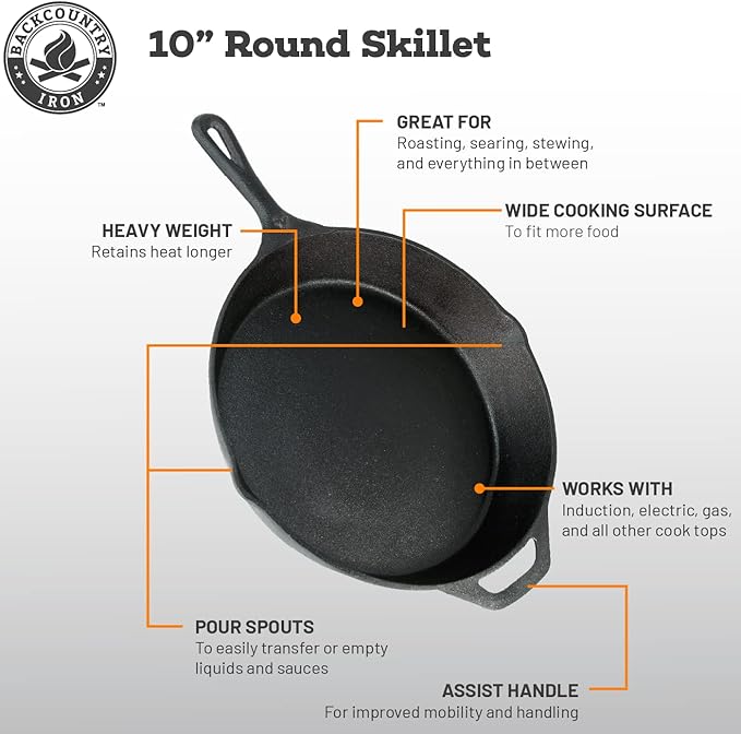 Backcountry Iron 12 Inch Round Large Pre-Seasoned Cast Iron Skillet