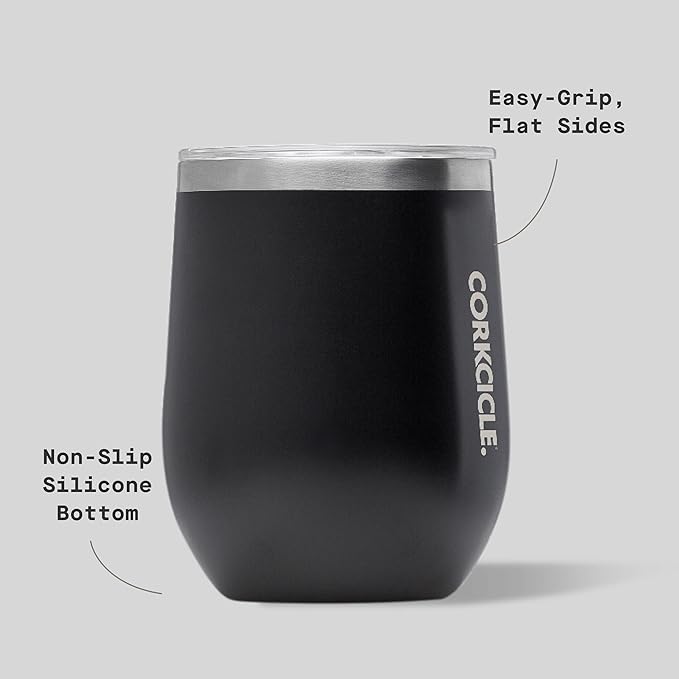 Corkcicle Stemless Wine Tumbler - Keeps Drinks Cold for 6 Hours - Triple-Insulated Stainless Steel - Non-Slip Base - Summer Drinkware Gift - Keeps Drinks Ice Cold - 12 oz - Matte Black