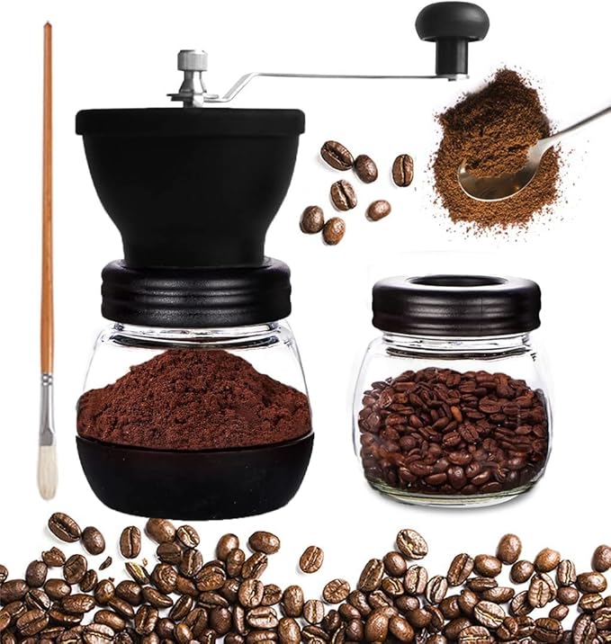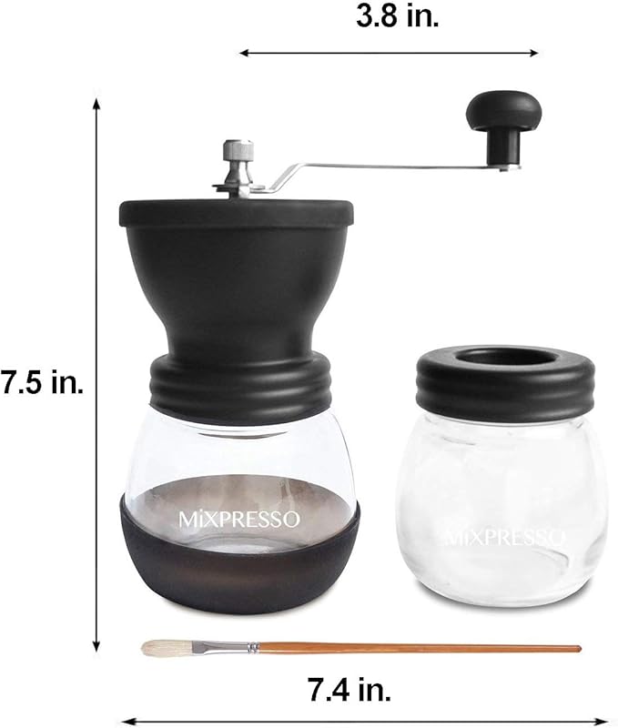 Mixpresso Manual Coffee Grinder, Spice Grinder Manual, Glass Jars, Ceramic Burr, Adjustable Grind, Easy to Clean, Portable Compact Design, 3 Piece Set, Stainless Steel