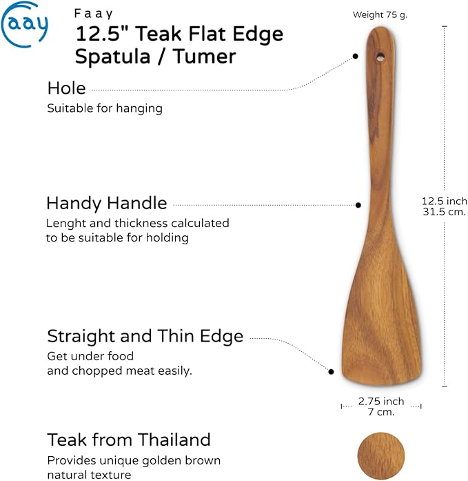 About This Teak Spatula Overview Material : Teak Brand : FAAY Size : 12 Inch Flat Edge Spatula Product Dimensions... Read more
