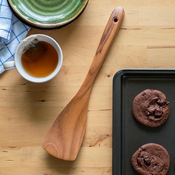 FAAY Teak Wooden Turner, Saute Paddle, Spatula, Compact - XL Size, Healthy and High Moist Resistance for Non Stick Cookware (12 Inch Flat Edge Spatula)