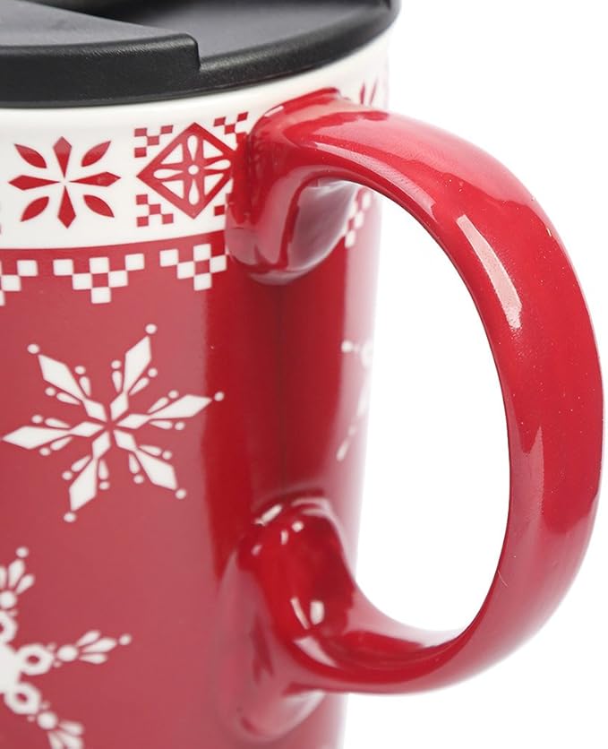 Topadorn Christmas Ceramic Mug Coffee Cup with Sealed Lid and Matched Gift Box Latte Mug 17oz(Snowflake)