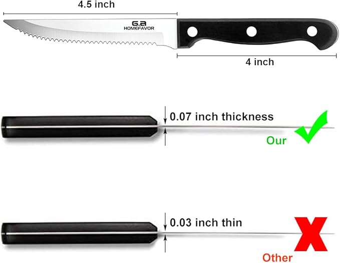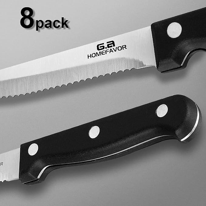 G.a HOMEFAVOR Steak Knife Set Stainless Steel, 8 Pieces Full Tang Sharp Serrated Knives Cutlery Set, Black