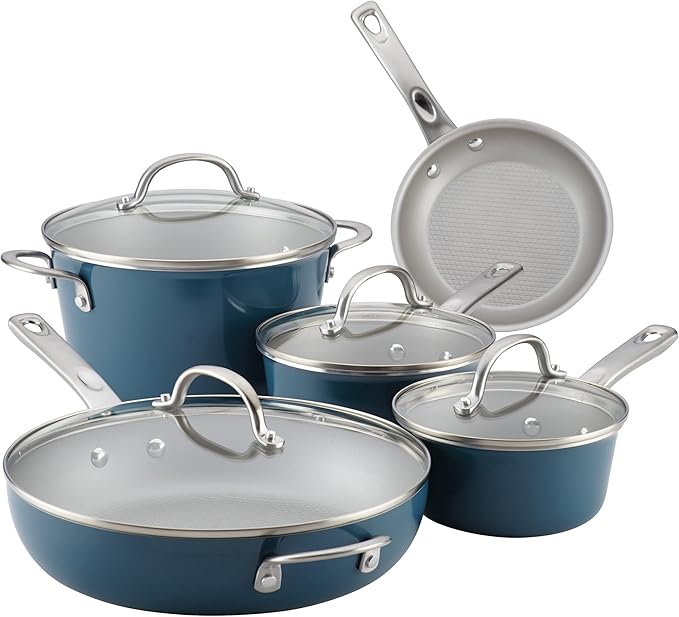 Ayesha Curry Home Collection Nonstick Cookware Pots and Pans Set, 9 Piece, Twilight Teal