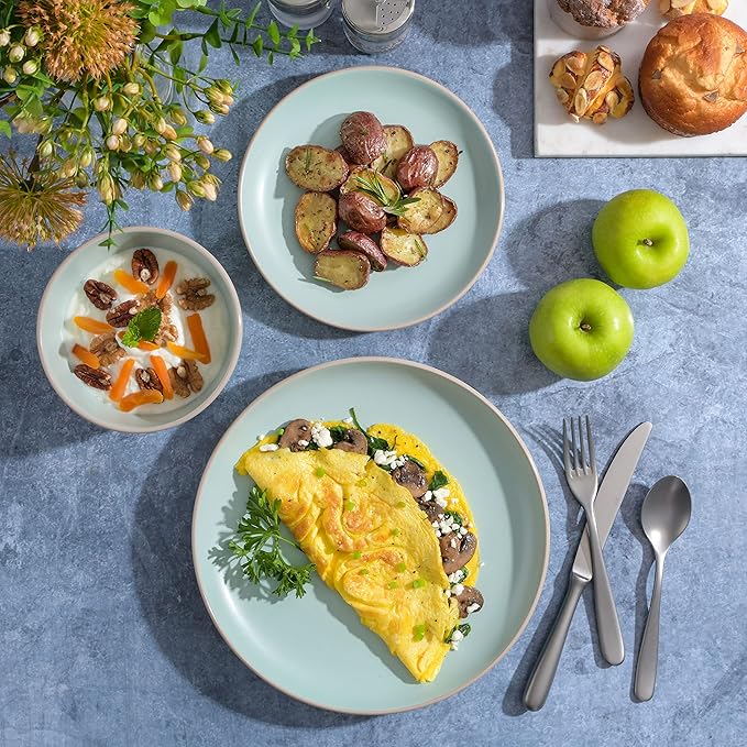 Gibson Home Rockaway Dinnerware, Teal Matte, Service for 4 (12pcs)