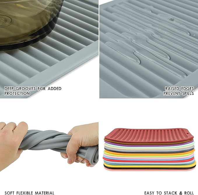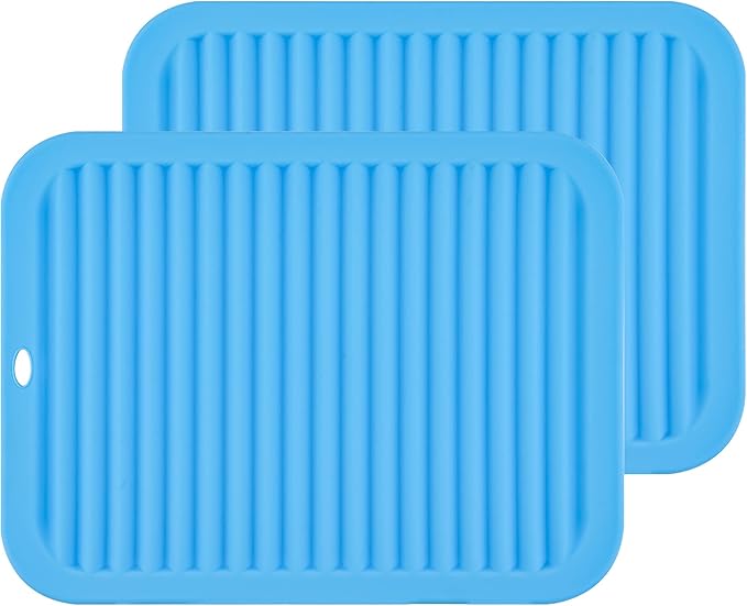 Big Silicone Trivets mat Set of 2 Smithcraft 9"X12" Multi-Purpose Drying Trivet Mat, Pot Holder, Waterproof, Non Slip, Flexible, Durable, Dishwasher Safe Blue