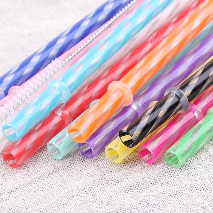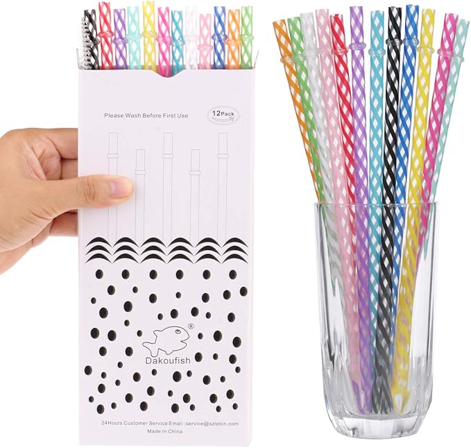 Dakoufish 12 Piece 11 Inch Reusable Plastic Thick Replacement Straws for 16 OZ 20 OZ 30 OZ Stanley,YETI,Starbucks, Owala Tumblers with Brush (11inch, Mix 12color)