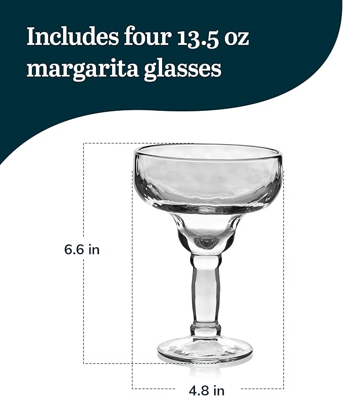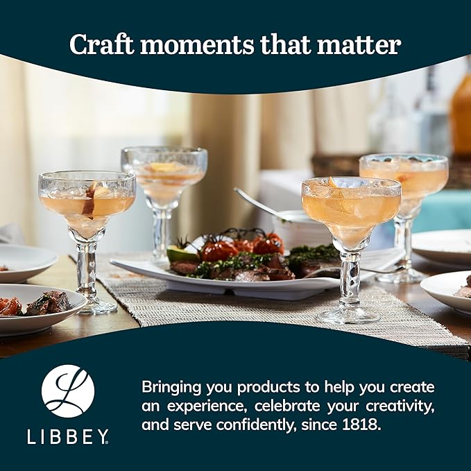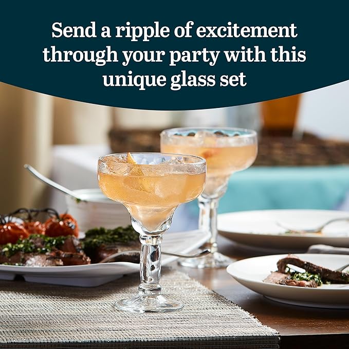 Libbey Yucatan Margarita Glasses Set of 4, 13.5 Oz, Stunning Ripple Bar Glass Set, Cocktail Glassware for Frozen Daiquiri, Slushy Punch, and More