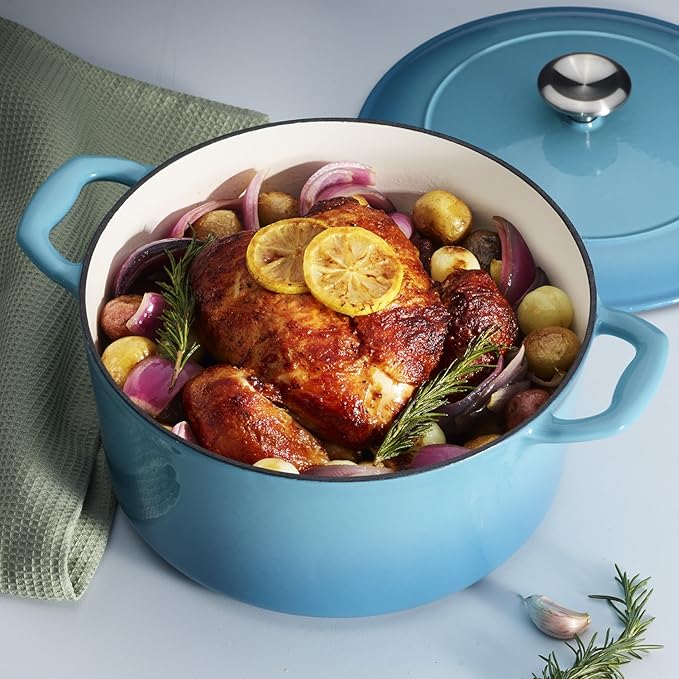 Tramontina Bestow Enameled Cast Iron Dutch Oven Pot with Lid, Round 5.5-quart, Medium Blue